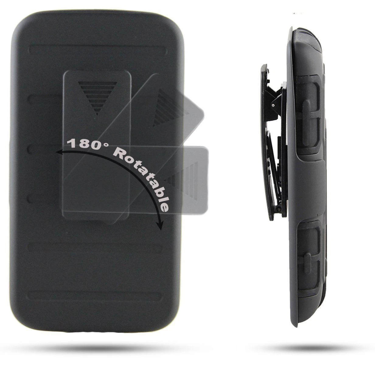 * Built-in 180 degree rotatable belt-clip and one foldable kickstand which is great for chatting and watching movies, etc.