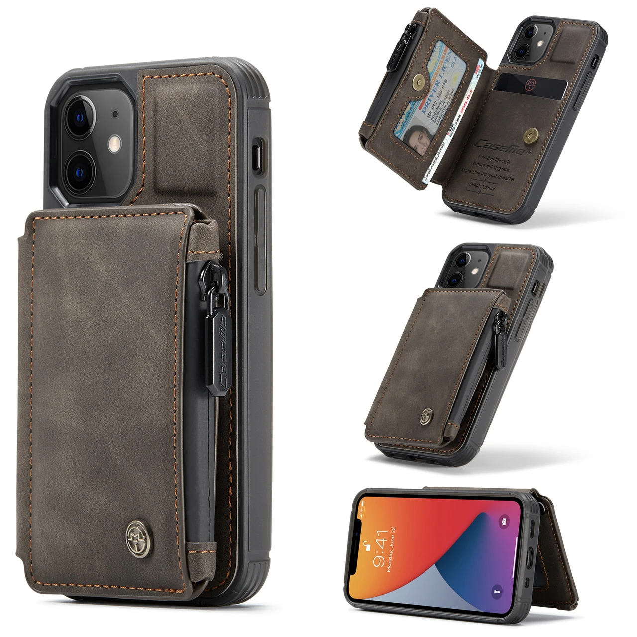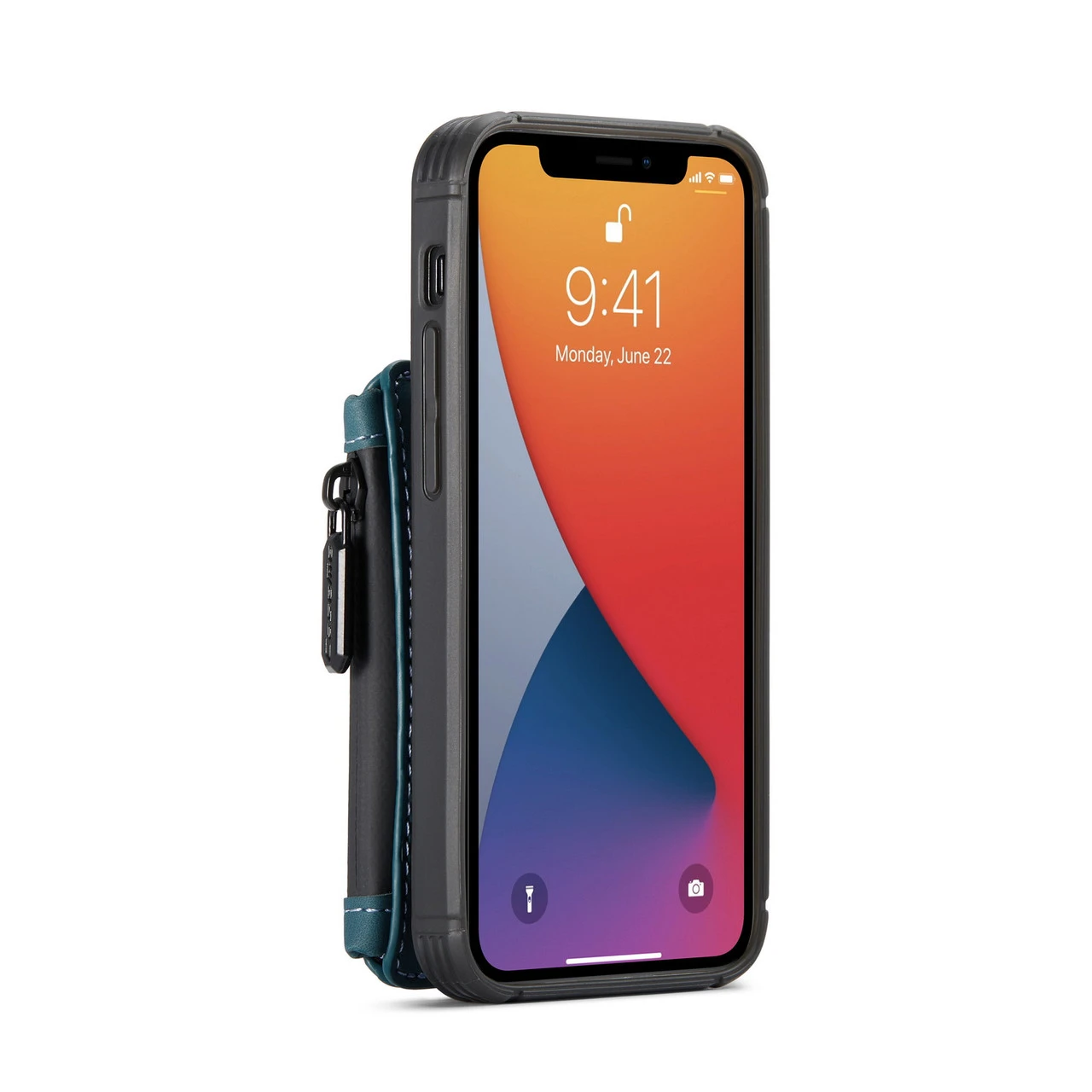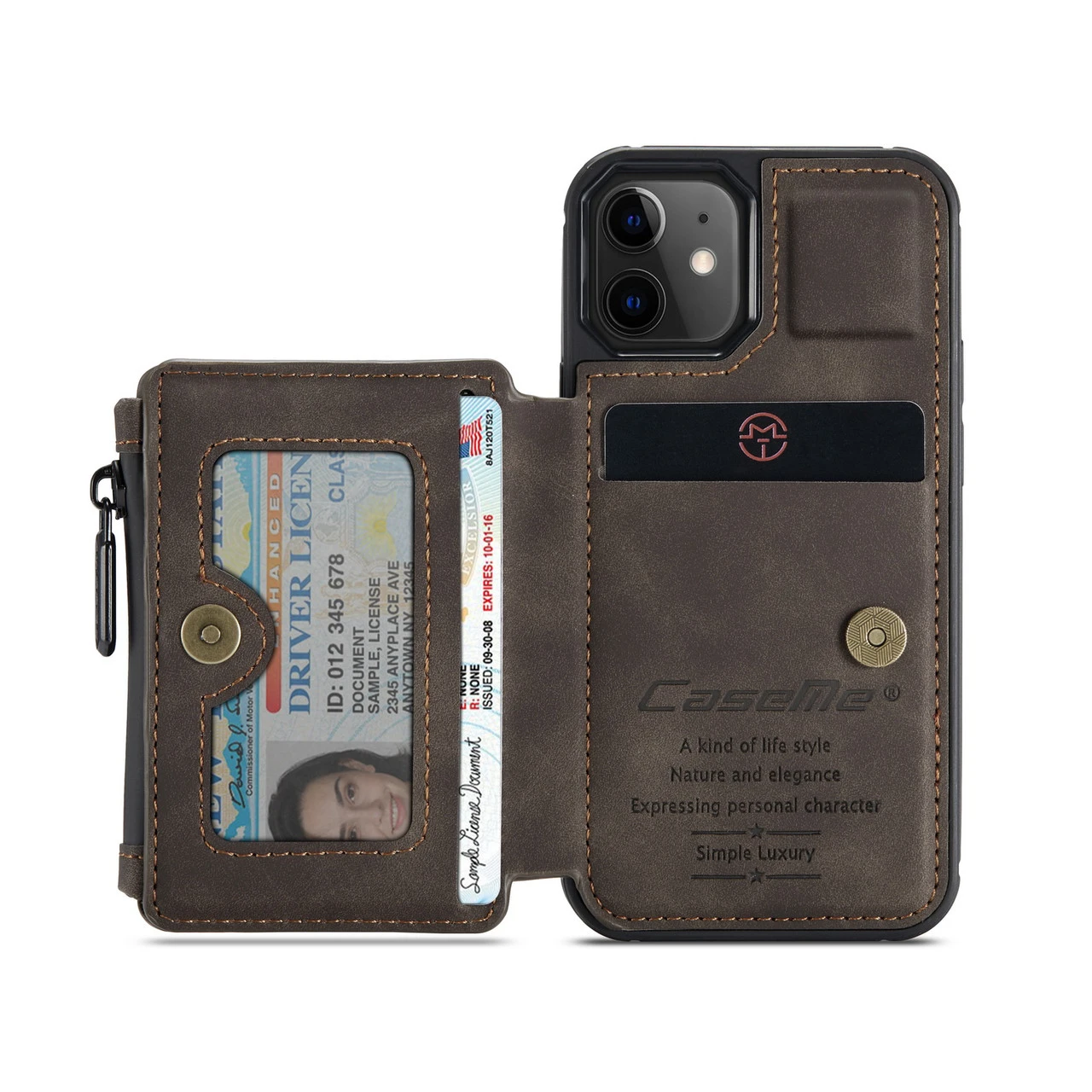 - Rugged shockproof phone case (no front cover) with a multi-function wallet. The wallet pocket attaches to the case with magnetic buttons.