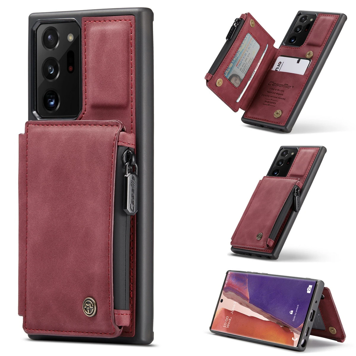 - Rugged shockproof phone case (no front cover) with a multi-function wallet. The wallet pocket attaches to the case with magnetic buttons.