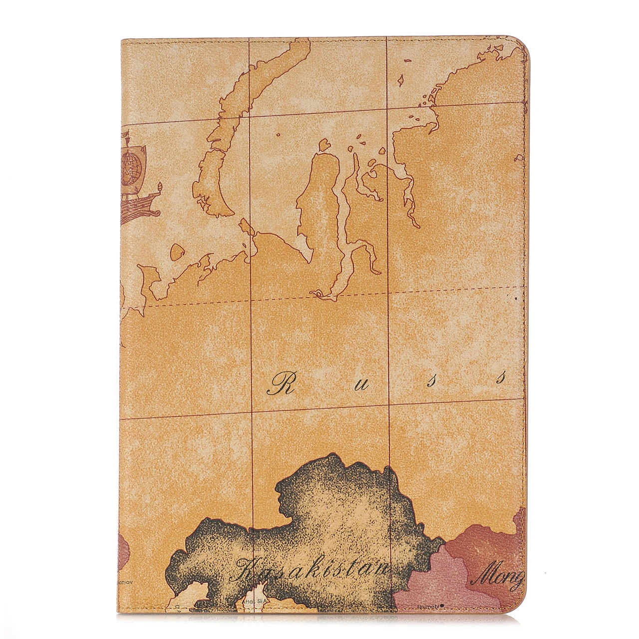This stylish leather folio case provides full coverage to protect the back and the screen. It can be folded and closed easily. Features world map graphics.Â