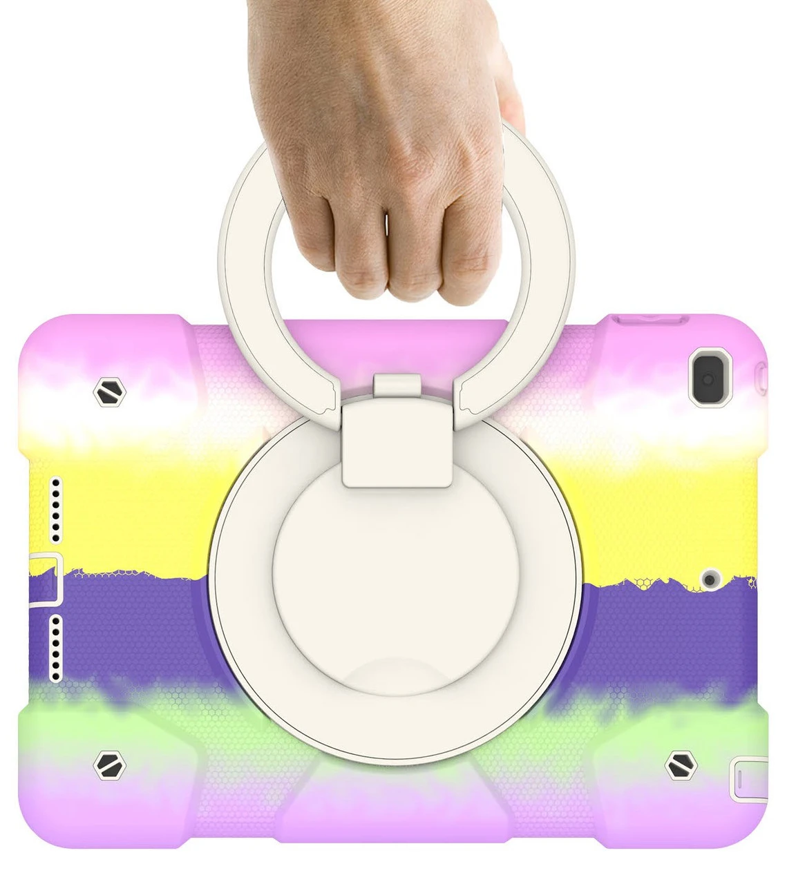 - Rotatable and collapsible ring-shape kick-stand/holder makes it easy to stand and carry around. 360-degree rotation horizontally and 180-degree rotation vertically. The handle is smooth at hand, simple to use and sturdy when standing at a few designed angles. More typing/viewing angles in both portrait and landscape mode;
