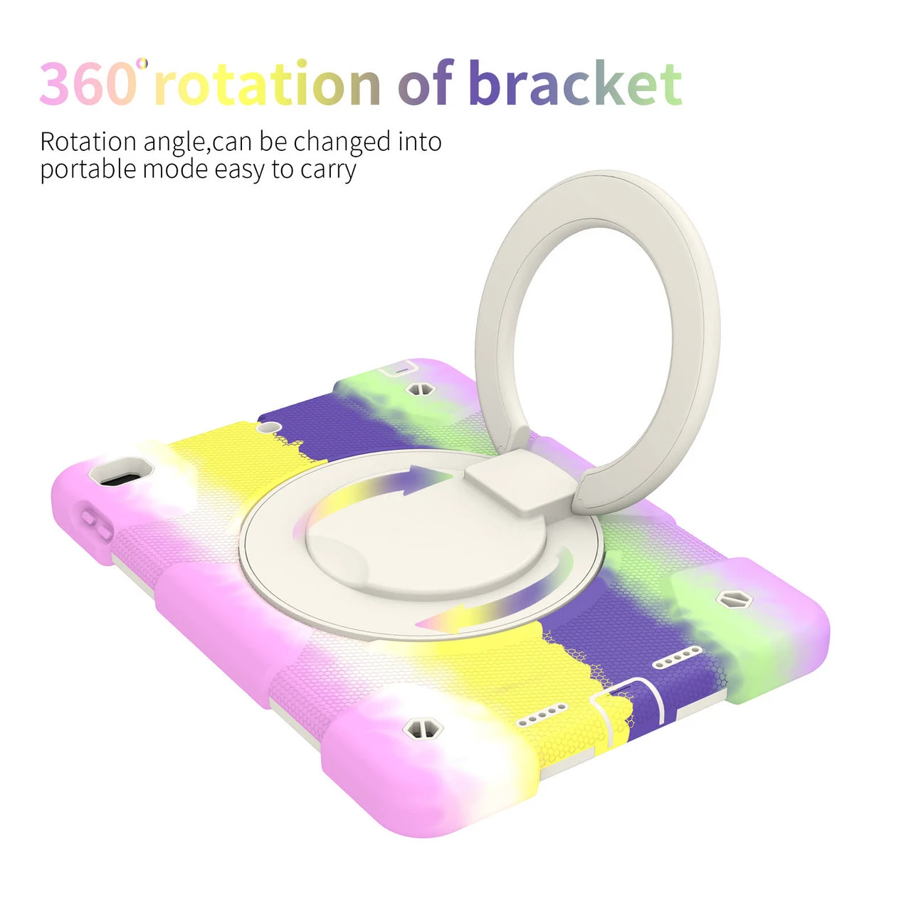 - Rotatable and collapsible ring-shape kick-stand/holder makes it easy to stand and carry around. 360-degree rotation horizontally and 180-degree rotation vertically. The handle is smooth at hand, simple to use and sturdy when standing at a few designed angles. More typing/viewing angles in both portrait and landscape mode;