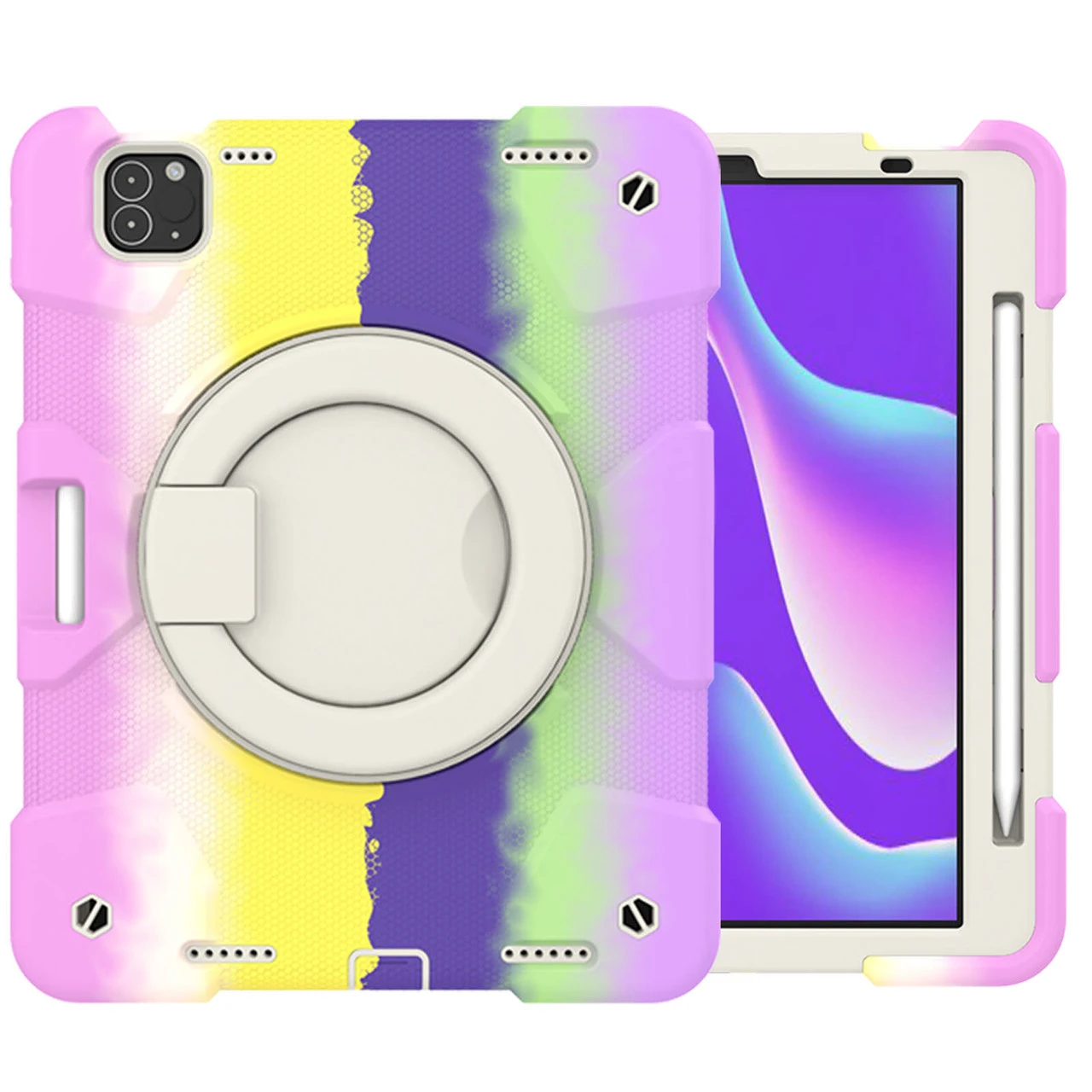 - Rotatable and collapsible ring-shape kick-stand/holder makes it easy to stand and carry around. 360-degree rotation horizontally and 180-degree rotation vertically. The handle is smooth at hand, simple to use and sturdy when standing at a few designed angles. More typing/viewing angles in both portrait and landscape mode;
