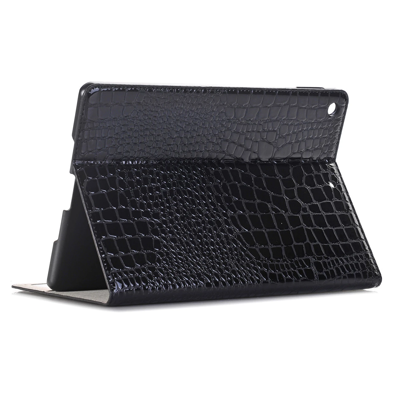 This stylish PU leather folio case provides full coverage to protect the back and the screen. It can be folded and closed easily. Features slick crocodile-skin pattern (not genuine crocodile skin).