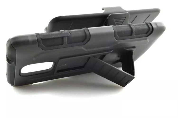 * Built-in 180 degree rotatable belt-clip and one foldable kickstand which is great for chatting and watching movies, etc.