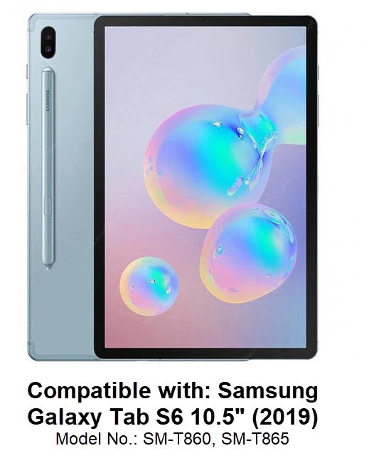 * Compatible with Samsung Galaxy Tab S6 10.5″ inch, 2019 version (SM-T860 SM-T865, Released in Aug 2019, Wifi 3G and 4G LTE). Reference here: https://www.gsmarena.com/samsung_galaxy_tab_s6-9781.php