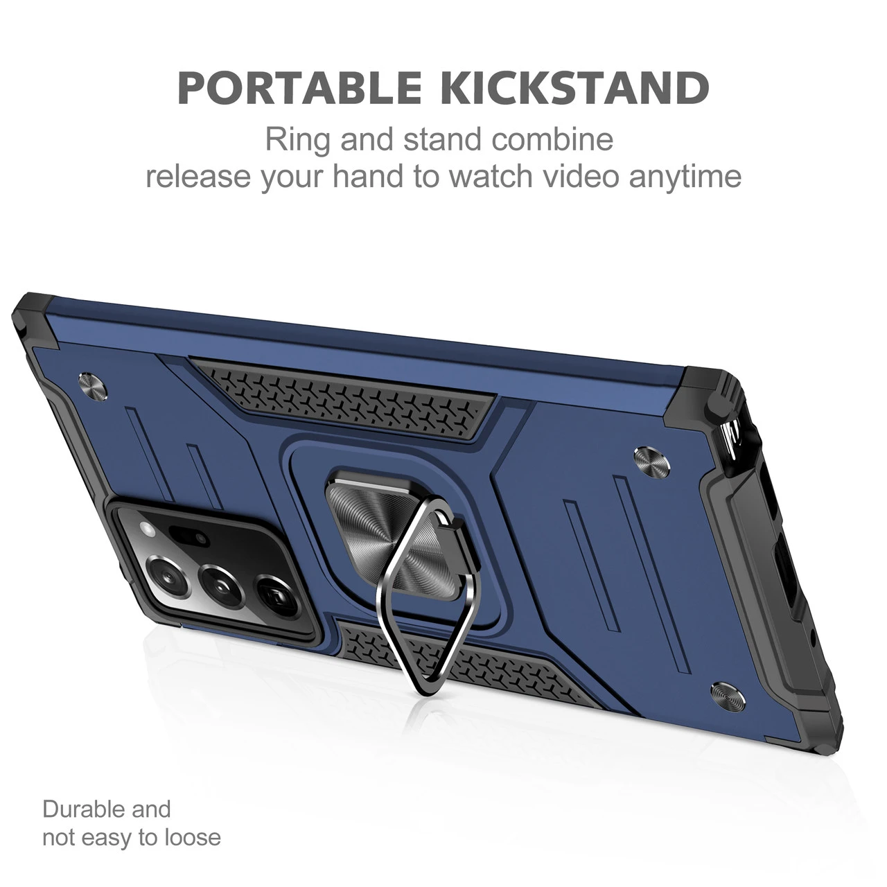 - Ring-shape metal holder provides convenient and safer grips with hand and fingers. 180 and 360-degree rotating modes make it easier to adjust the stand/view angles.