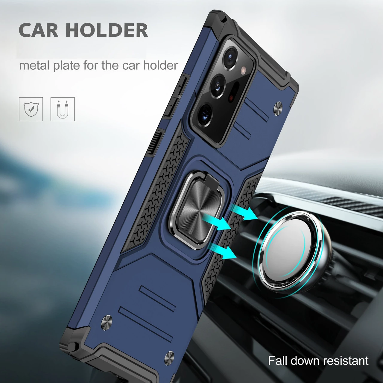 - Metal plate in the centre of the holder can be attached to magnetic car holders.